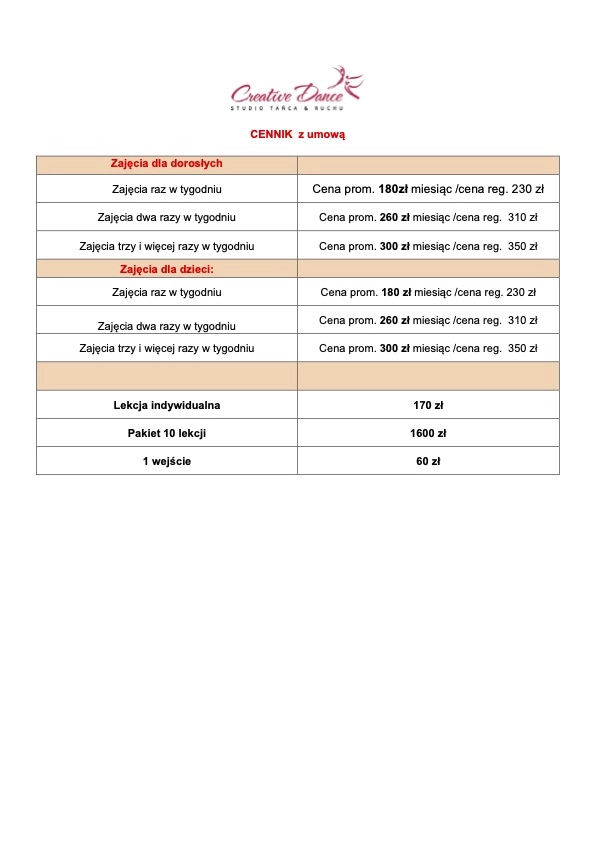 - jeśli masz pytania skontaktuj się z nami mailowo info@creativedance.pl