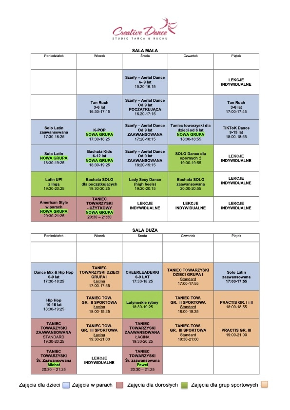 - start zajeć od 08.09.2025 dla dzieci (zajęcia dla dorosłych rozpoczynają się również od 9.09.2024 zajęcia w parach od października)